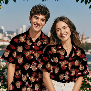 Camisa Hawaiana Personalizada Con Cara Y Flor Naranja, Camisa Hawaiana Personalizada Con Hojas Azules€19,95 €40,00 -