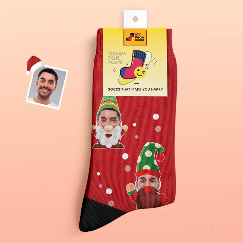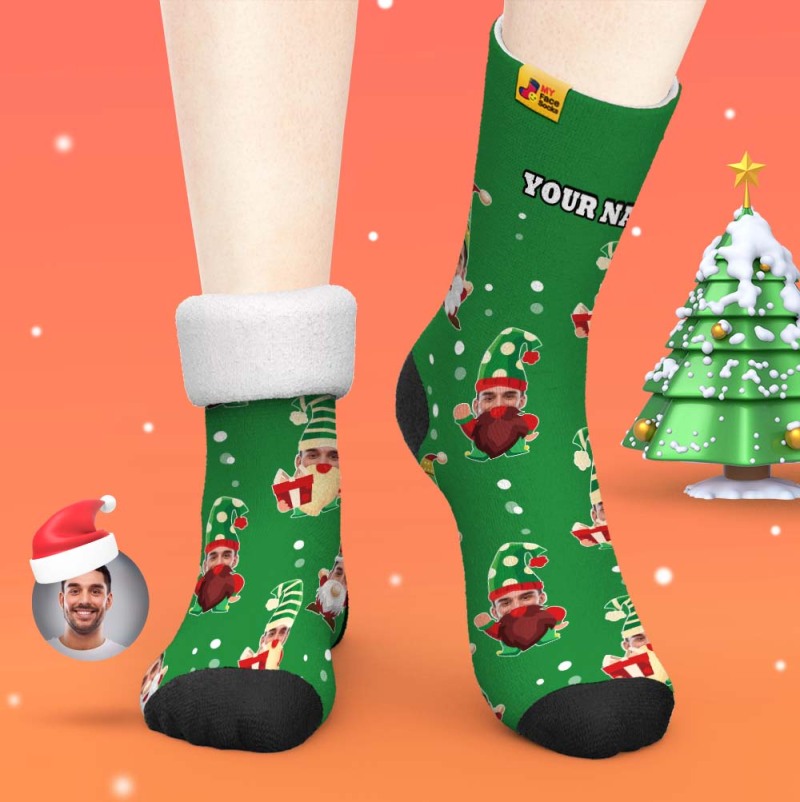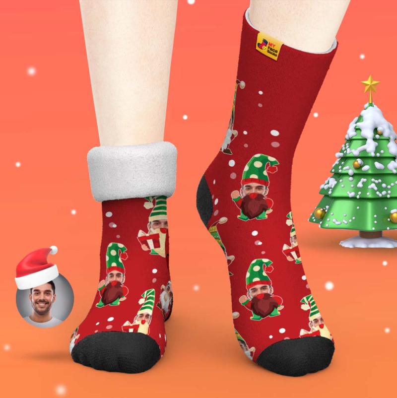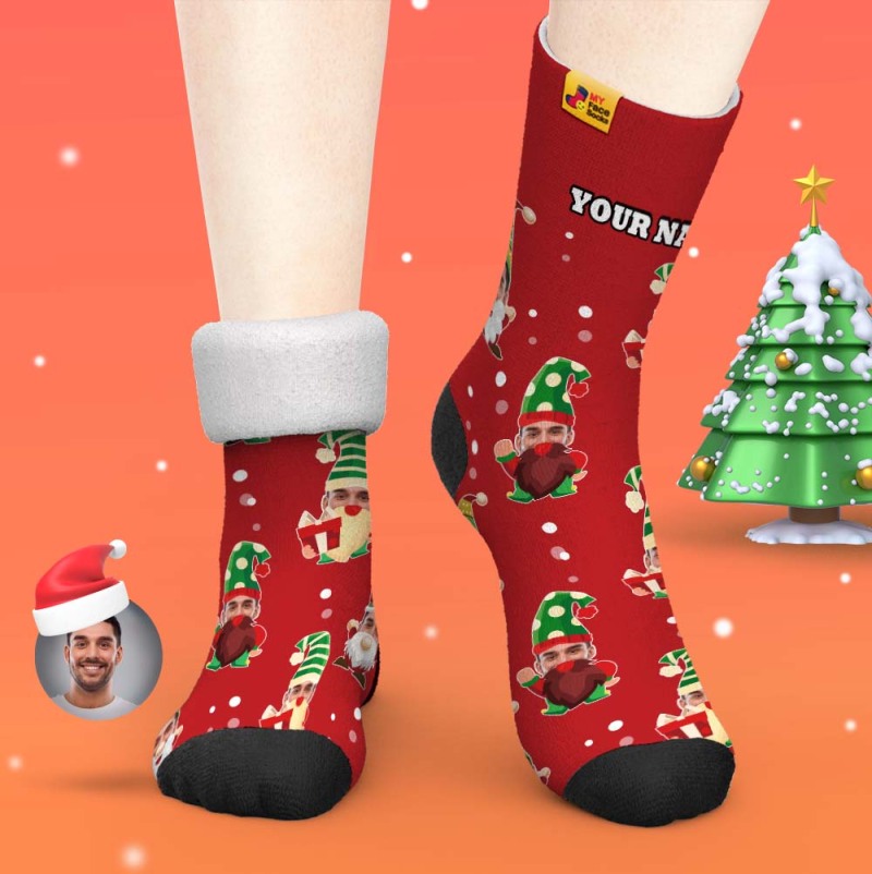 Regalos De Navidad, Calcetines Gruesos Personalizados Foto 3d Calcetines Impresos Digitales Otoño Invierno Calcetines Cálidos Gnomo Barbudo