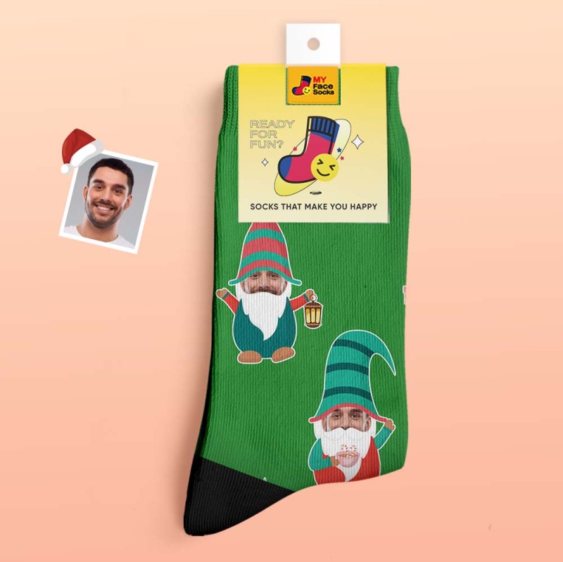 Regalos De Navidad, Calcetines Gruesos Personalizados Foto 3d Digital Impreso Calcetines Otoño Invierno Cálido Calcetines Gnome Calcetines