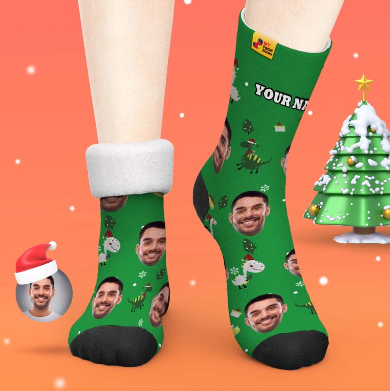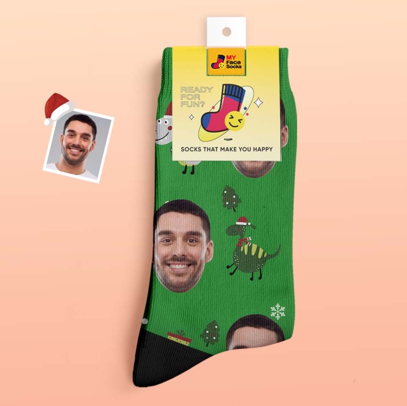 Regalos De Navidad, Calcetines Gruesos Personalizados Foto 3d Digital Impreso Calcetines Otoño Invierno Cálido Calcetines Santa Sombrero Dinosaurio