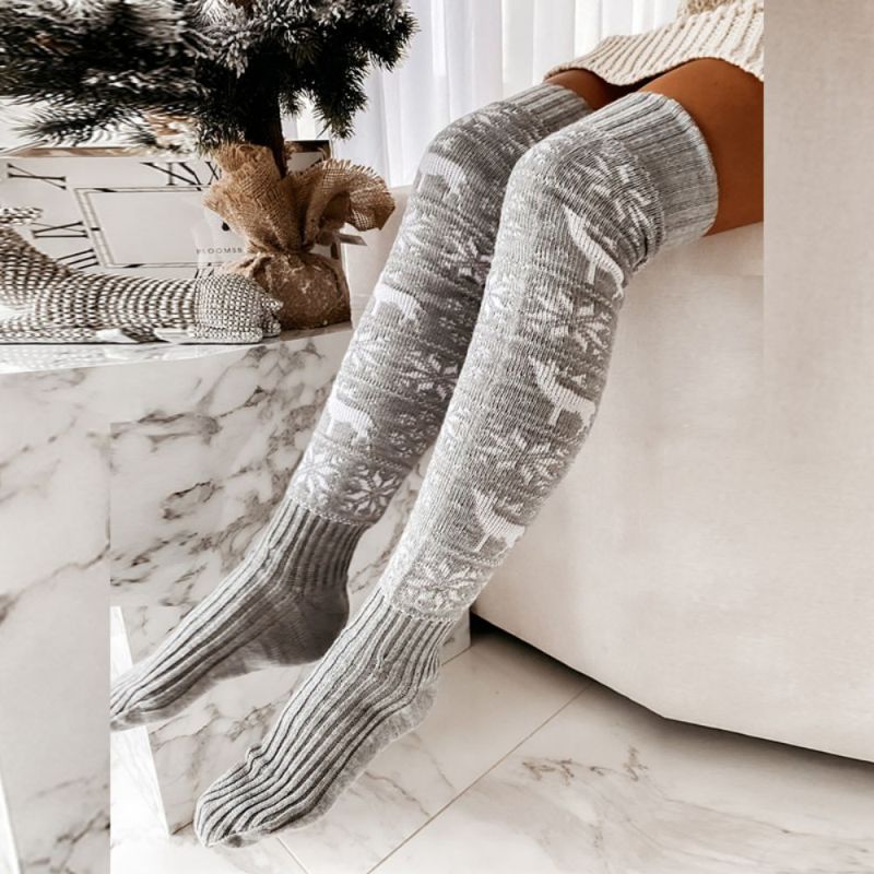 Christmas Snowflake Elk Long Tube Knitted Over The Knee Pila Calcetines De Mujer