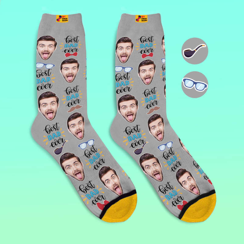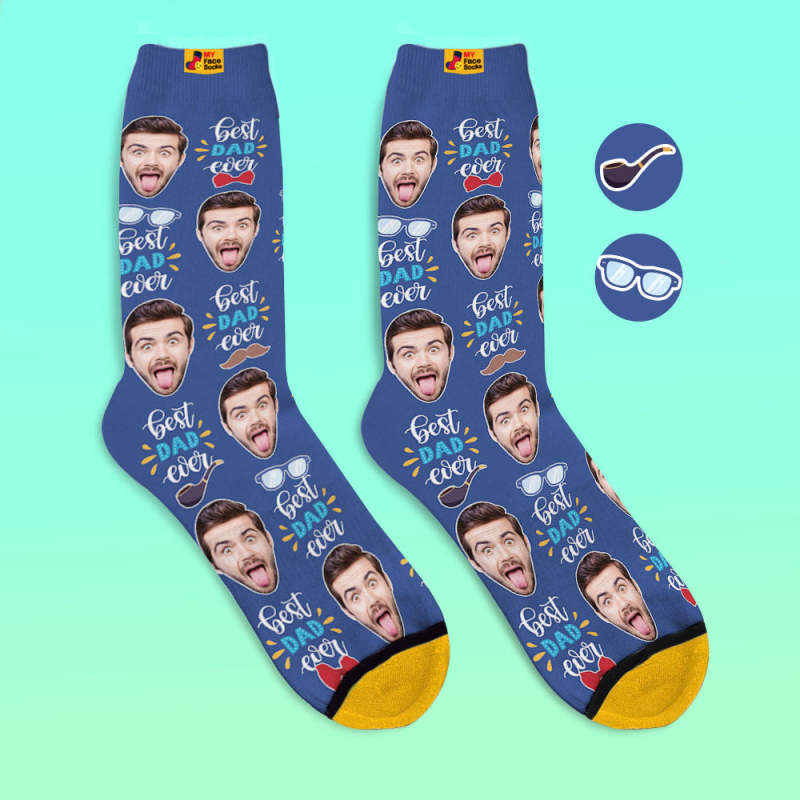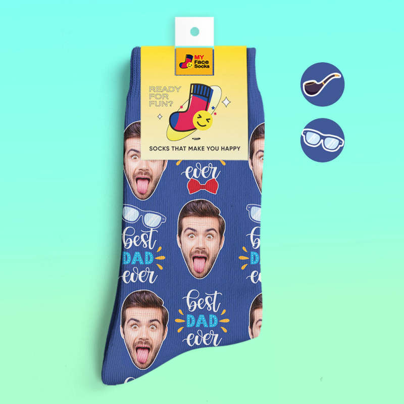 Calcetines Impresos Digitales Personalizados En 3d El Mejor Papá De Todos Los Tiempos Con Pajarita Y Elementos Para Los Ojos