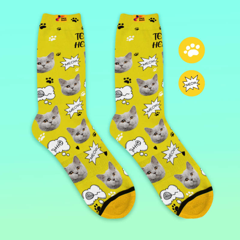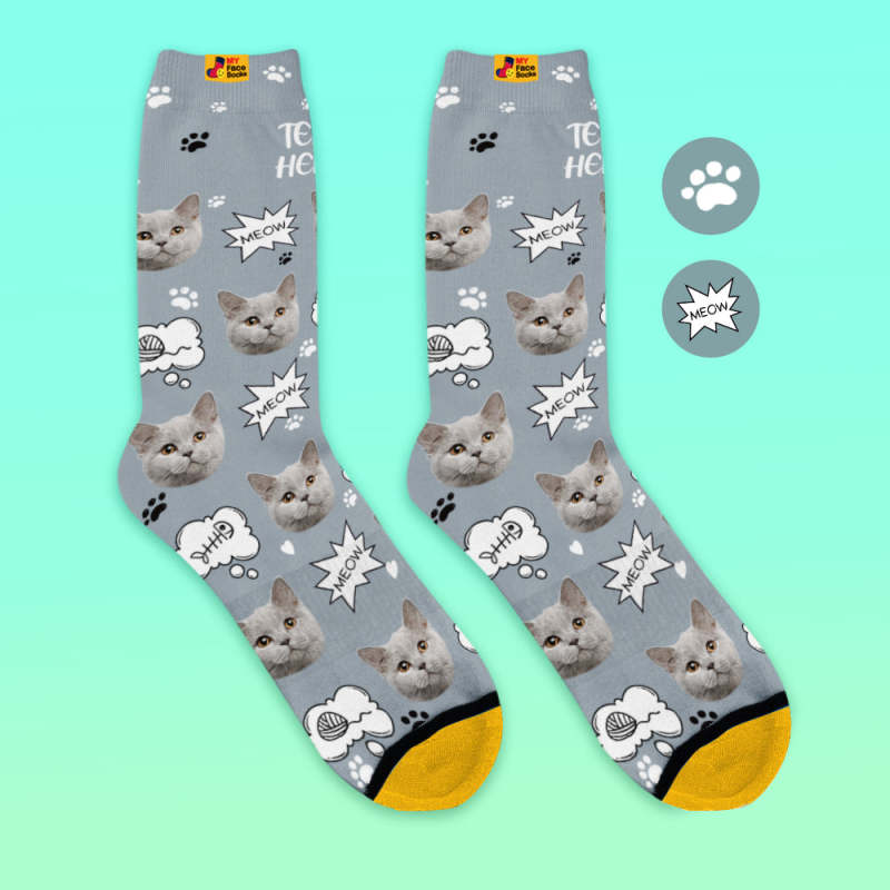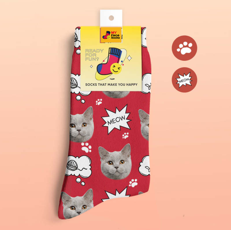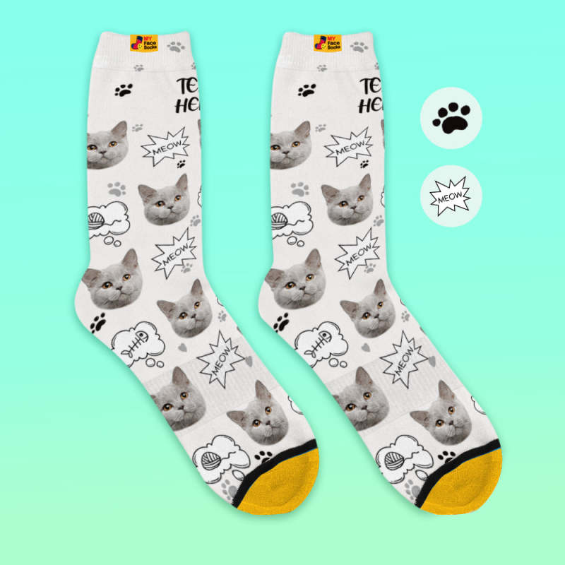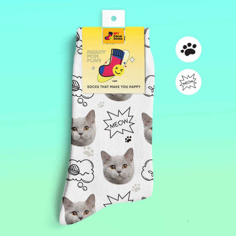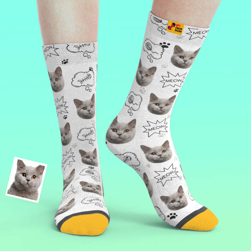 Calcetines De Vista Previa 3d Personalizados Calcetines My Face Agregar Imágenes Y Nombre - Miau