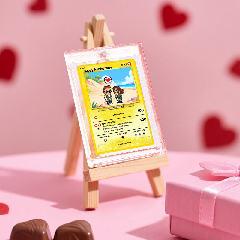 Tarjeta De Aniversario Personalizada De Pokémon, Tarjeta De Pareja Personalizada Estilo Pixel Man, Lindo Regalo Con Foto De Dibujos Animados Para Él O Ella