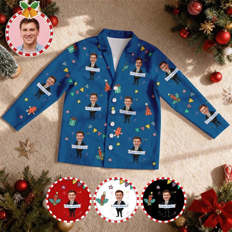 Pijama De Manga Larga Con Foto Personalizada De Cara De Cumpleaños