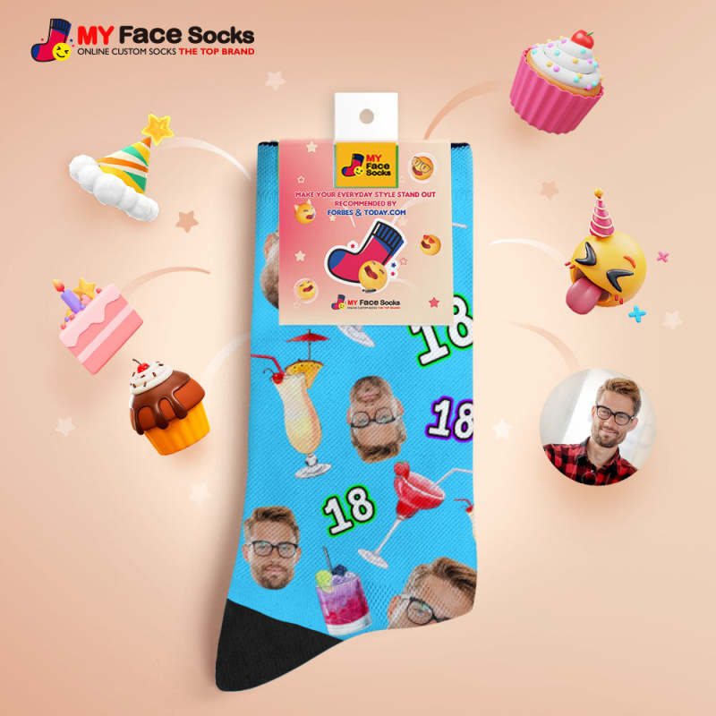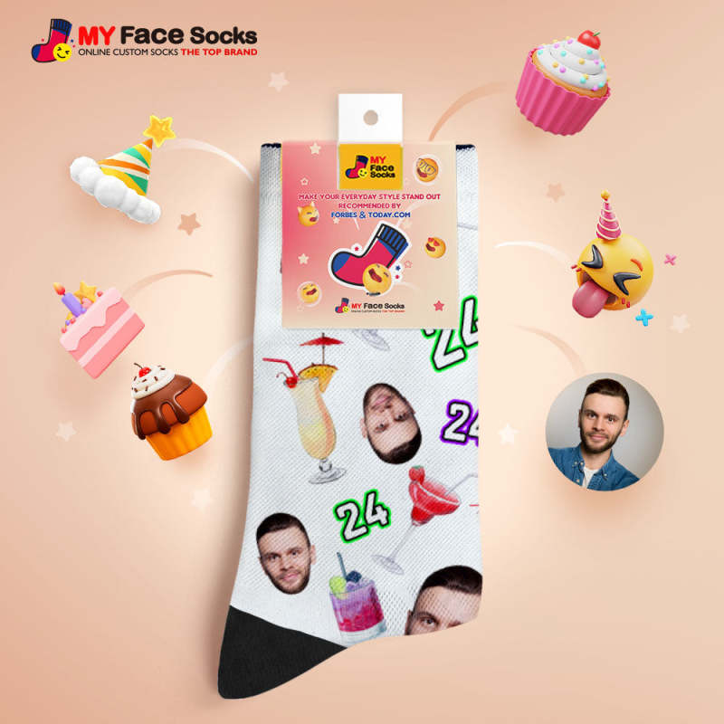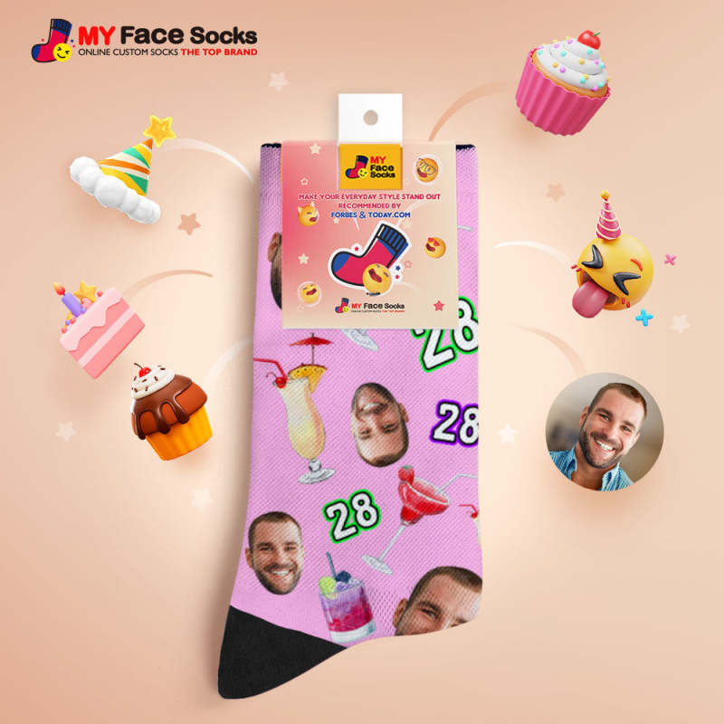 La Cara Respirable De Encargo Pega El Número Y Los Postres Y Bebidas Del Cumpleaños De Los Calcetines De La Cara