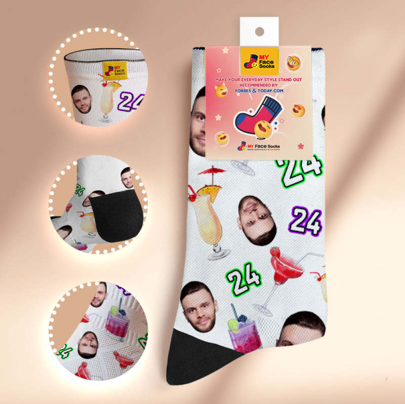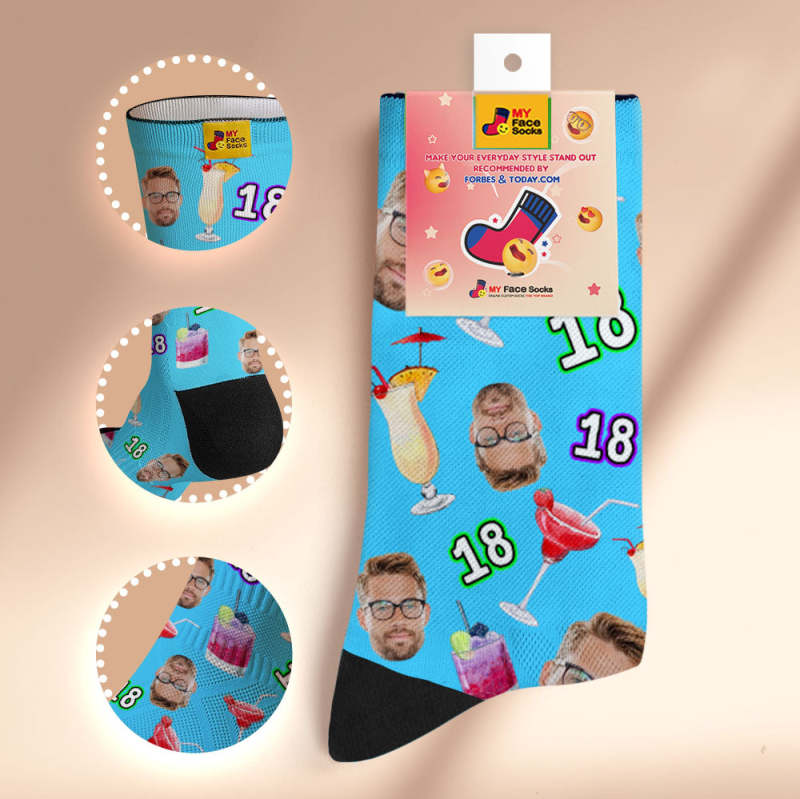 ¡Pon tu cara en la nueva actualización de calcetines faciales transpirables y súper suaves y crea el regalo único perfecto!