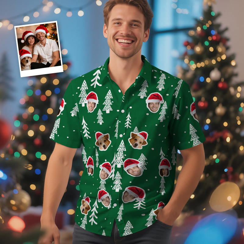 Camisa Hawaiana Navideña Personalizada Con Cara De Feliz Navidad, Regalo Para Familiares Y Amigos, Regalo De Navidad.