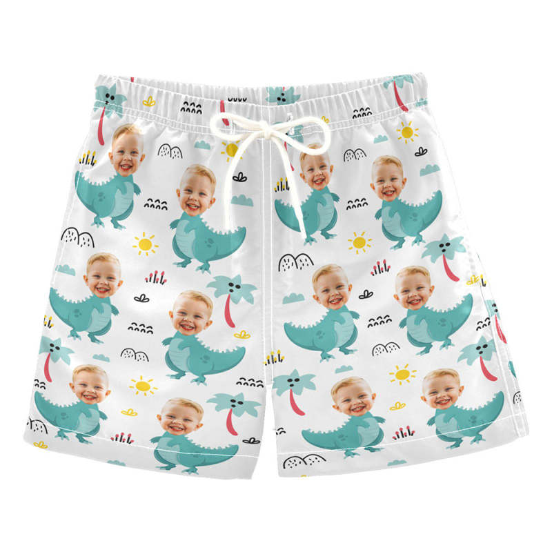 Regalo Personalizado De Los Pantalones Cortos De La Playa De La Foto Del Dinosaurio Del Bebé De Los Troncos De La Playa De La Cara Para Los Niños