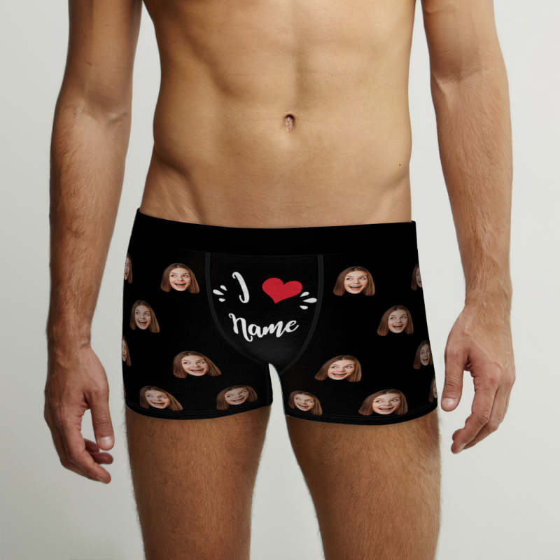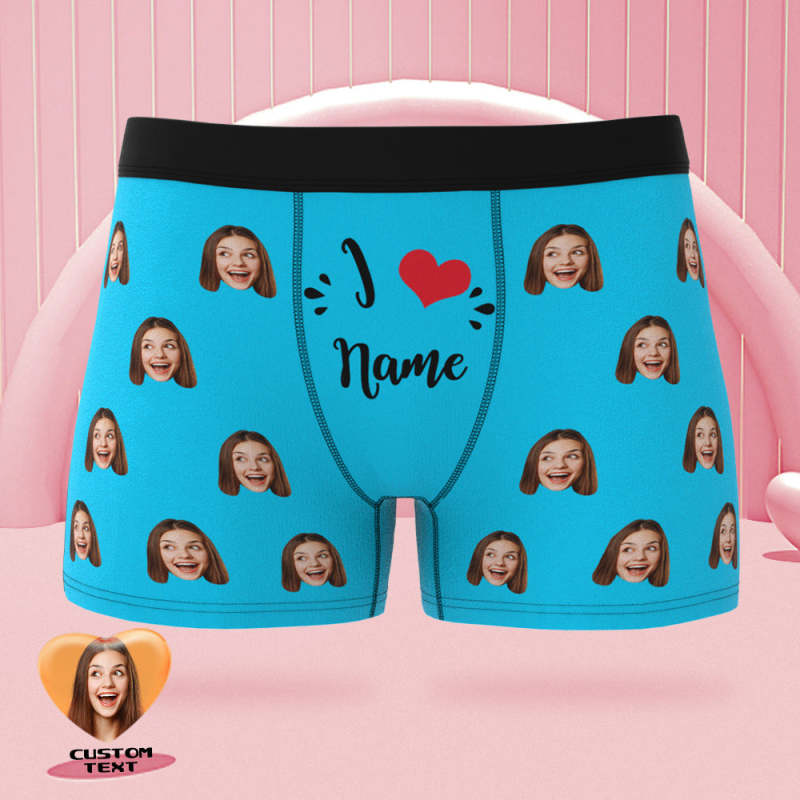 Calzoncillos Tipo Bóxer Con Cara Personalizada, Me Encanta El Nombre, Regalo De San Valentín Travieso Personalizado Para Él