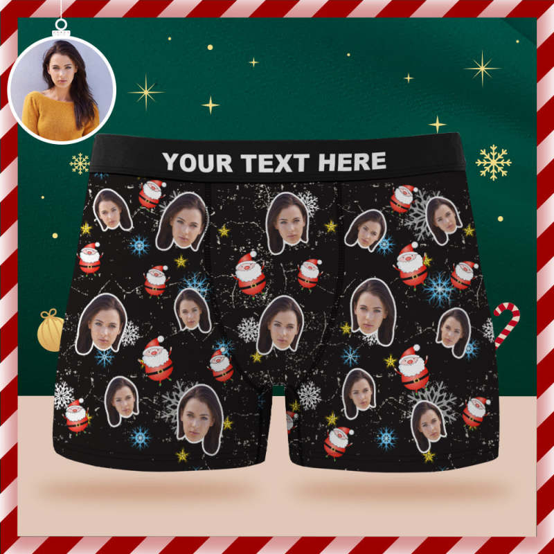 Custom Face Boxer Briefs Papá Noel Y Copos De Nieve Regalo De Navidad Personalizado Para Él