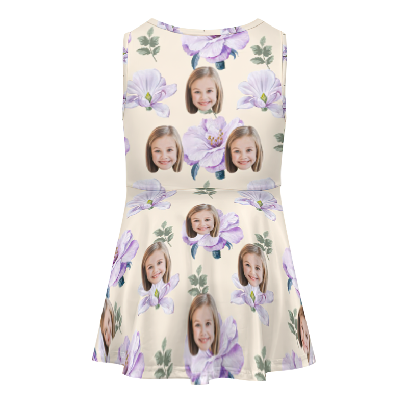 Vestido De Cara Personalizado, Vestidos Hawaianos De Verano Personalizados Para Niñas, Flores Moradas