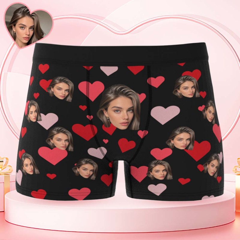 Calzoncillos Bóxer Personalizados Para Hombre Con Diseño De Corazón Y Cara. Un Regalo Único Para Él.