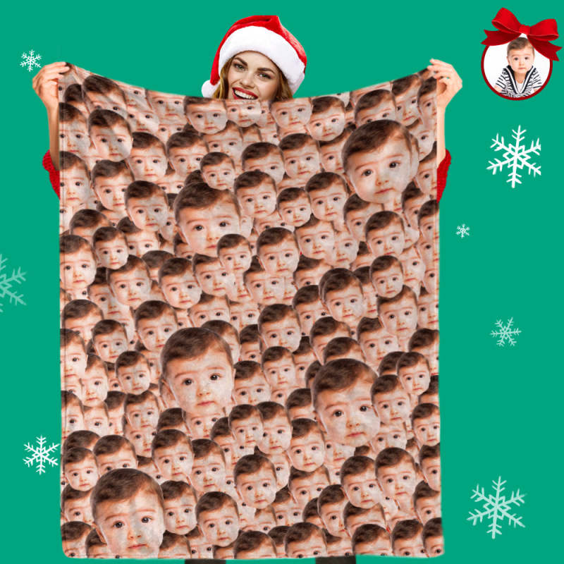 Manta Personalizada Con Múltiples Caras De Personas Y Mascotas