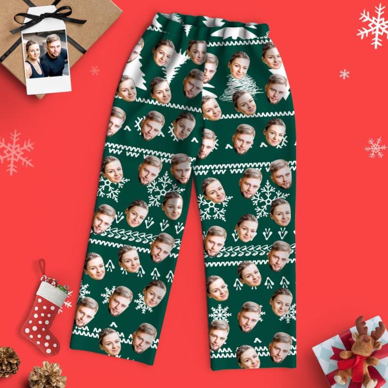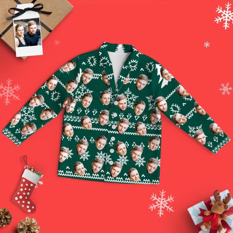 Pijama de Navidad de manga larga con cara personalizada - Parejas verdes