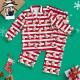 Pijama de Navidad de manga larga con cara personalizada - Pareja de rayas rojas y blancas
