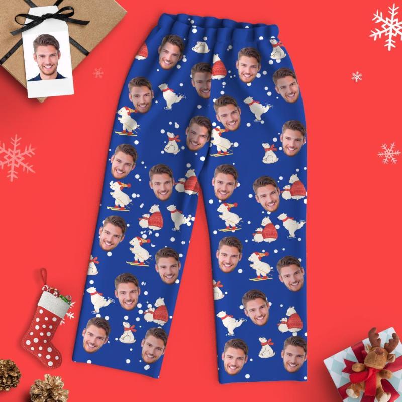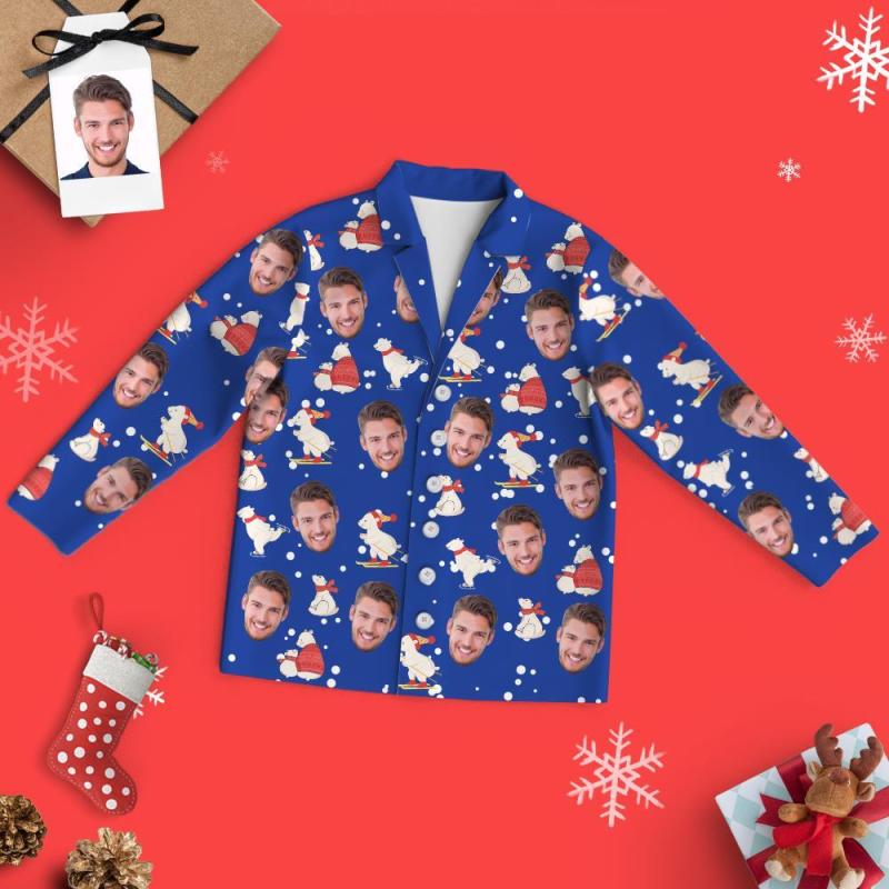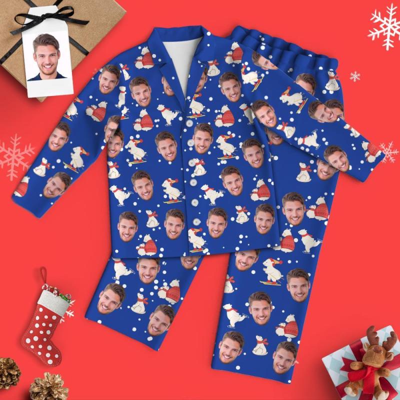 Pijama de Navidad de manga larga con cara personalizada - Oso esquiador