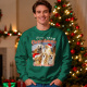 Sudadera Con Capucha Y Cuello Redondo Con Cara Personalizada, Retrato Retro Vintage De Tu Mascota, Sudadera Navideña Verde