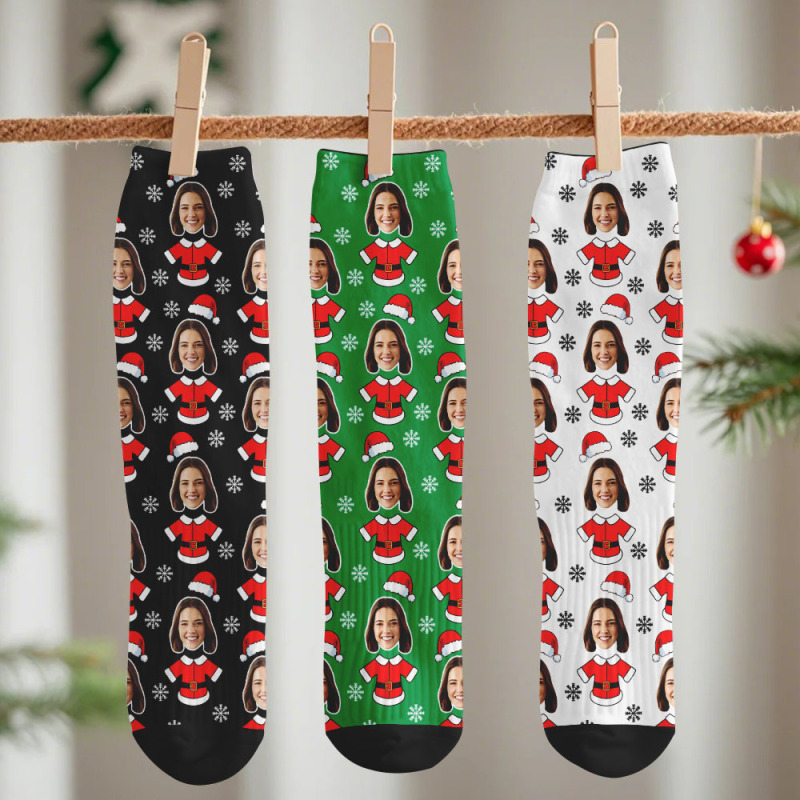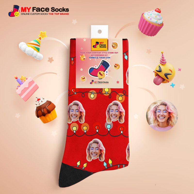 Calcetines Personalizados Con Caras, Luces Navideñas, Calcetines Multicolor, Calcetines Navideños Personalizados Con Foto, Regalo Divertido Para Familiares Y Amigos