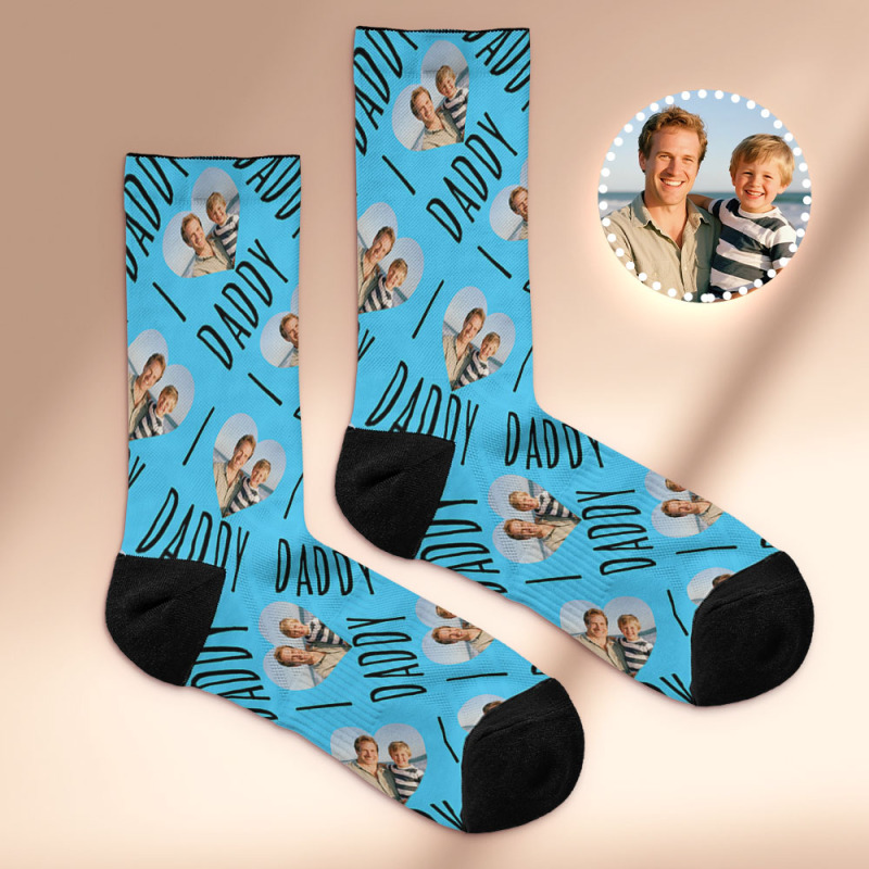 Calcetines Personalizados Con La Cara 'amo A Papá', Calcetines Con Foto Impresa, Calcetines Coloridos Para Papá, Regalo Personalizado Para El Día Del Padre