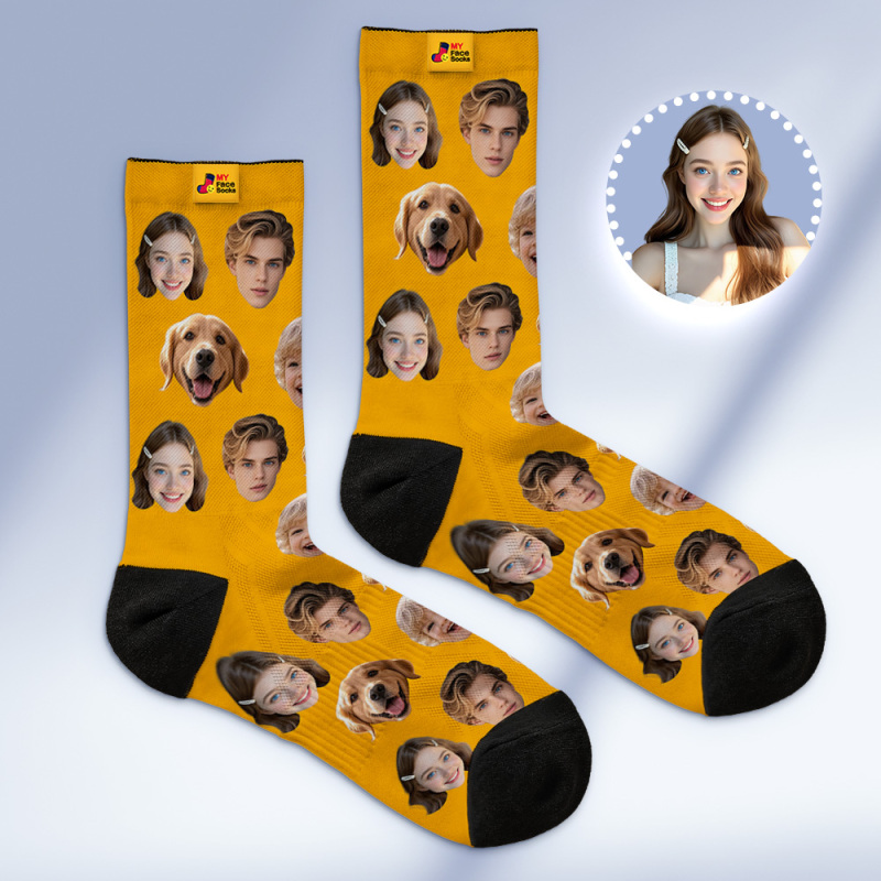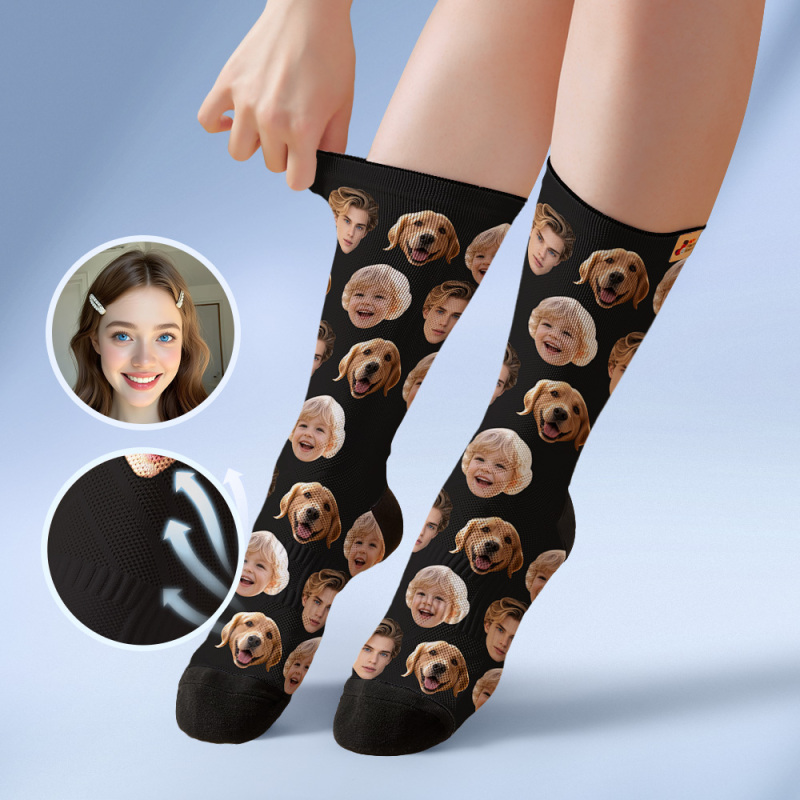 Calcetines Personalizados Con Caras, Calcetines Personalizados Con Foto De Caras, Azul Oscuro, Divertidos Calcetines Familiares Con Foto.