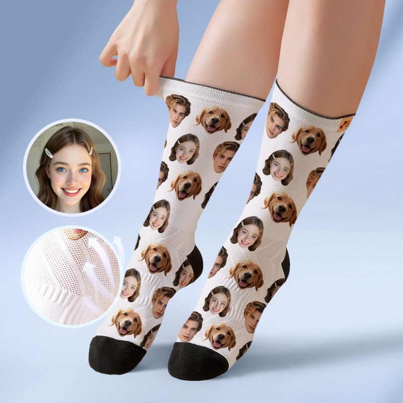 Calcetines Personalizados Con Caras, Calcetines Personalizados Con Foto De Caras, Calcetines Rojos Divertidos Con Foto Para Regalo Familiar.