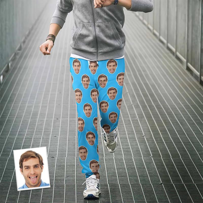 Pantalones De Chándal De Cara Personalizados Joggers Unisex Azules Personalizados - Regalo Para El Amante