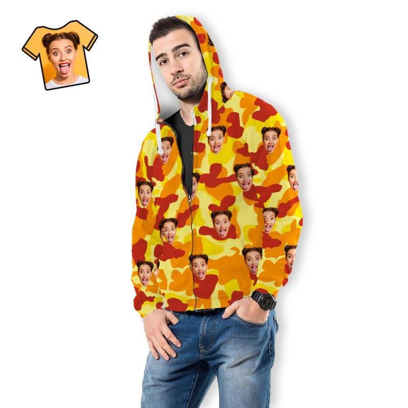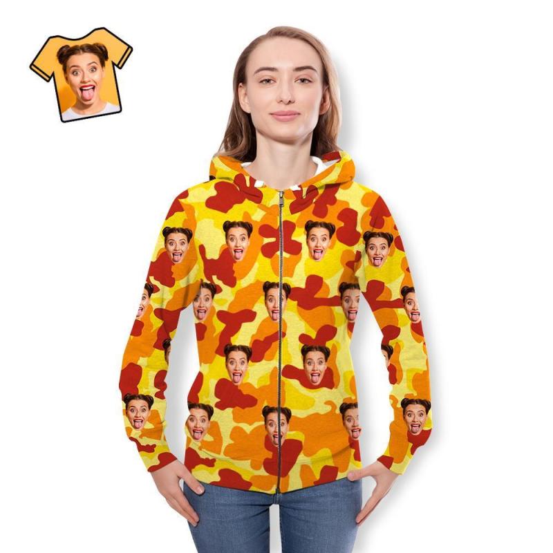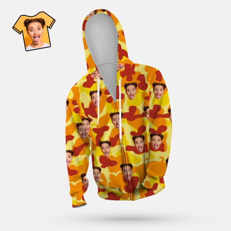 Cara Personalizada Unisex Sudadera Con Capucha Casual Impreso Naranja Camuflaje