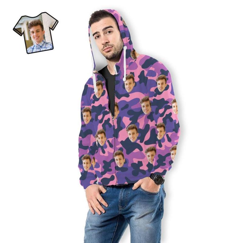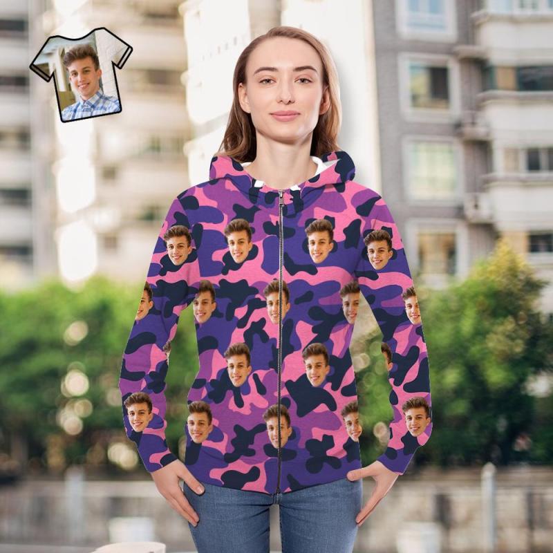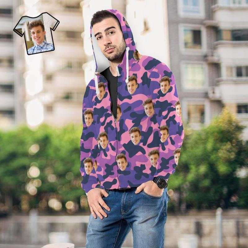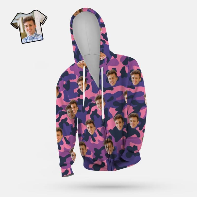 Cara Personalizada Unisex Sudadera Con Capucha Casual Impreso Púrpura Camuflaje