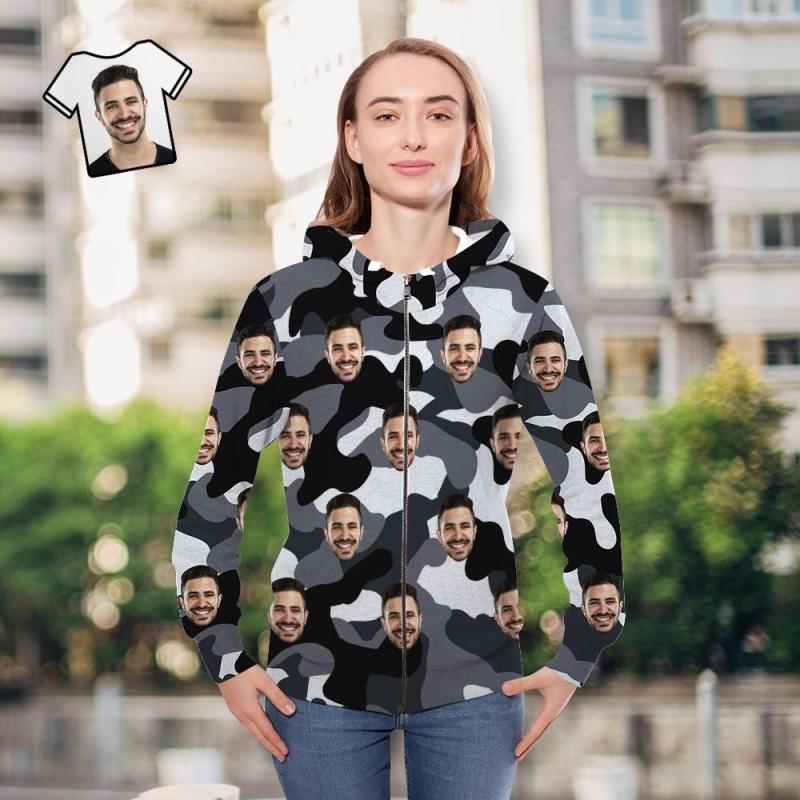 Cara Personalizada Unisex Sudadera Con Capucha Casual Impreso Gris Pizarra Camuflaje