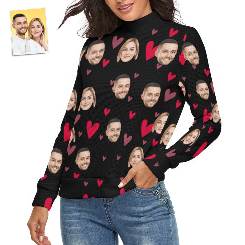 Suéter De Encargo De Las Mujeres De La Cara Con Poco Spandex Del Tema De Los Pares Del Corazón Cómodo