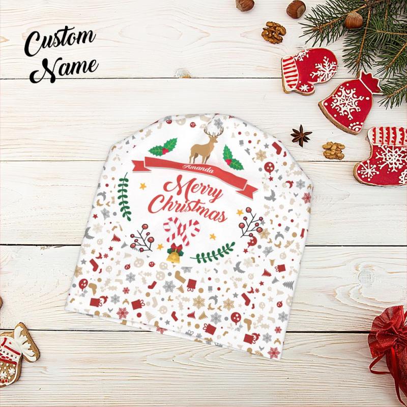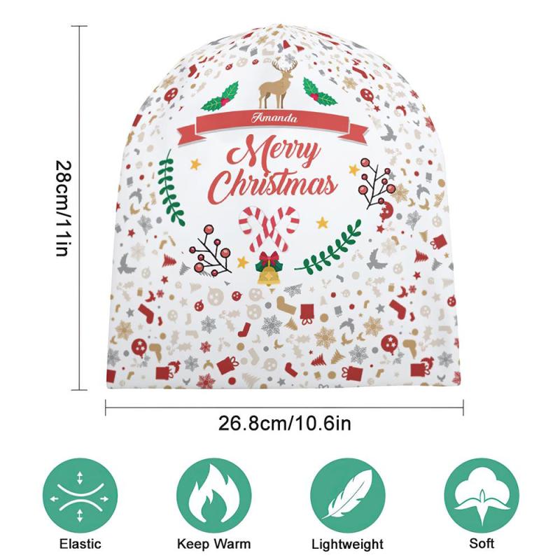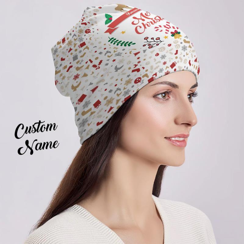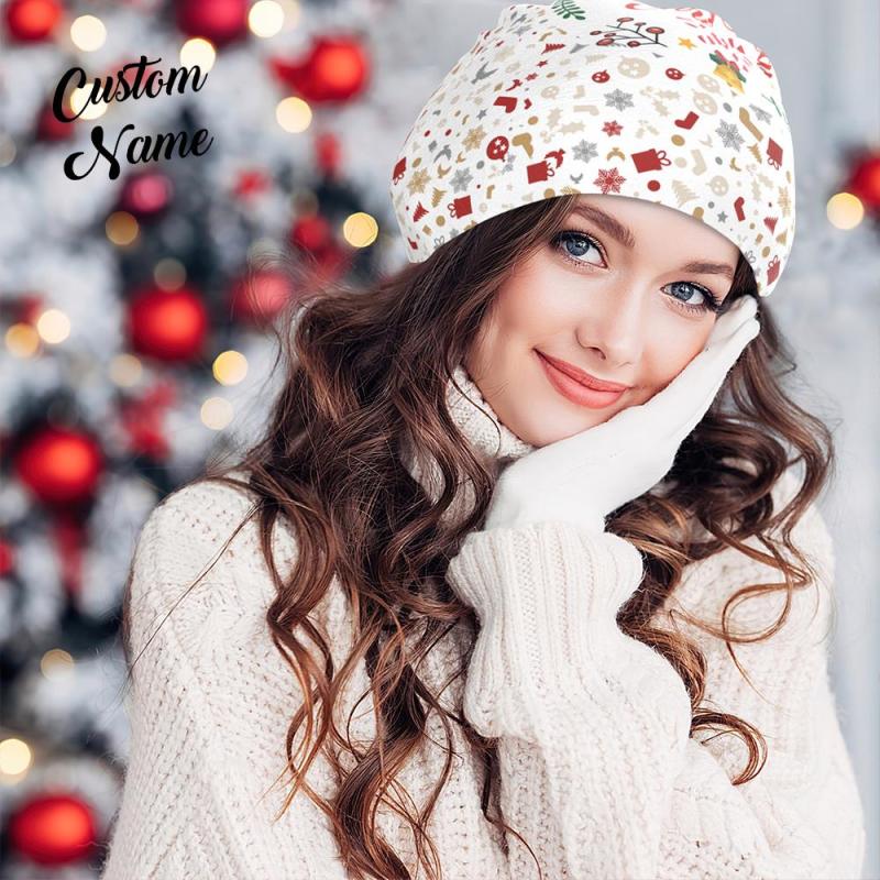 Gorra De Jersey Con Estampado Completo Personalizado Con Texto Gorros De Gorrita Tejida Personalizados Regalo De Navidad Para Ella - Feliz Navidad