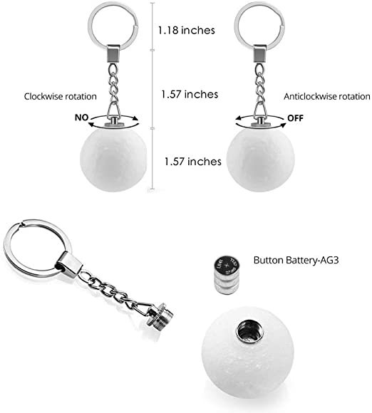- EASY TO USE: White light ; Multicolor light (White, Red and Blue lighting color. Just turn the keychain knob clockwise to turn the moonlamp on and counter-clockwise to turn it off.)
