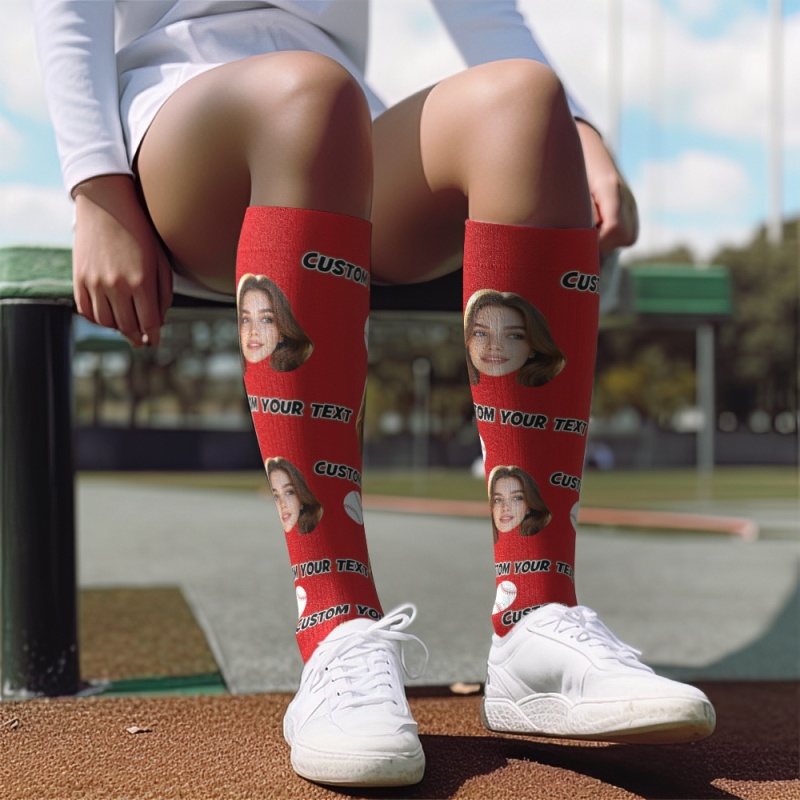 Calcetines De Compresión Hasta La Rodilla Personalizados Con Foto Y Texto En Rosa. Calcetines De Compresión Hasta La Rodilla Transpirables Y Personalizados.