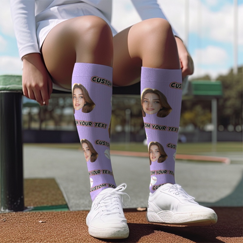 Calcetines De Compresión Hasta La Rodilla Personalizados Con Foto Y Texto En Blanco. Calcetines De Compresión Hasta La Rodilla Transpirables Y Personalizados.