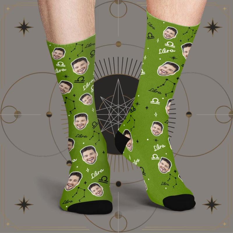 Calcetines De La Suerte De Libra Personalizados Calcetines De La Suerte De La Constelación Exclusivos De La Cara Personalizada