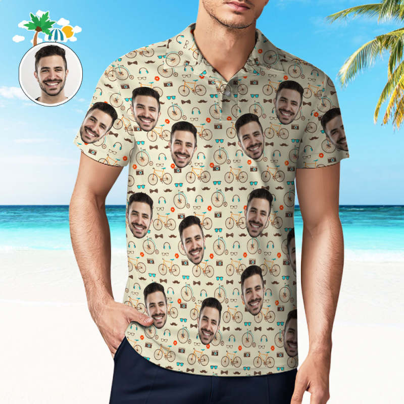 Polo Hawaiano Personalizado Con Cara Para Hombre, Polo Con Barba Y Corbata
