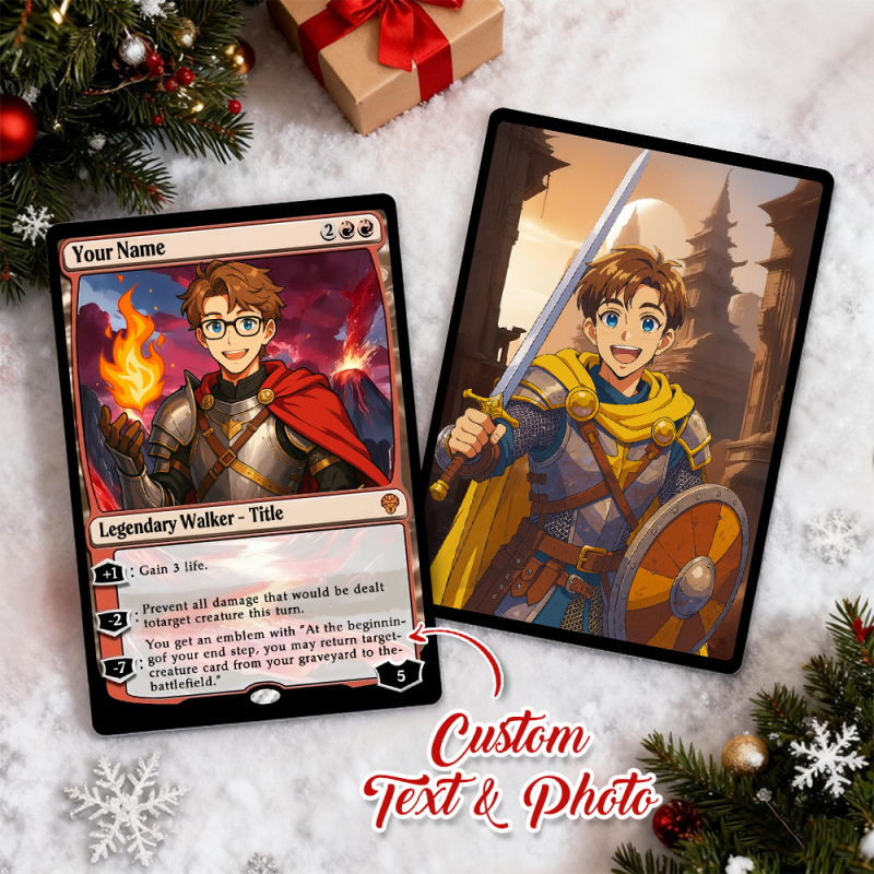 Tarjeta Acrílica Holográfica Personalizada Estilo Mtg. Regalo De Navidad Personalizado Estilo Magic. Regalo De Navidad Divertido Con Dibujos Animados Para Él O Ella.