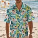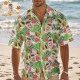 Camisa Hawaiana Verde Con Foto Personalizada, Hojas De Palma Y Flores Rosas. Regalo Tropical Personalizado.