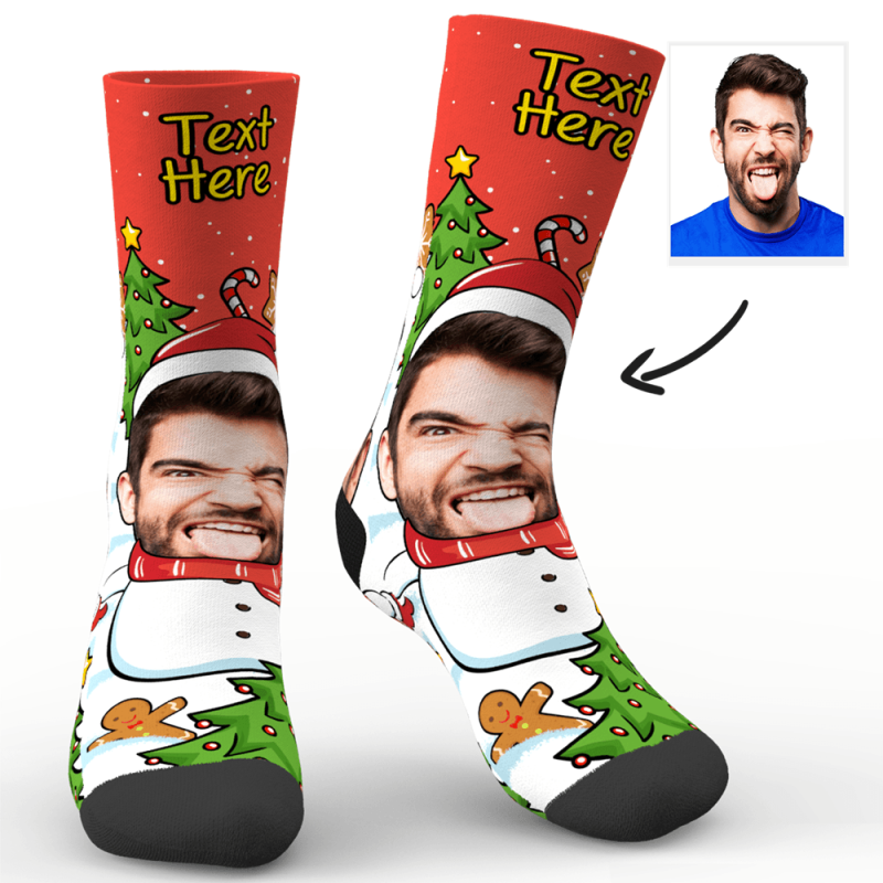 Calcetines Personalizados Navideños Muñeco De Nieve Añadir Imagen Y Nombre