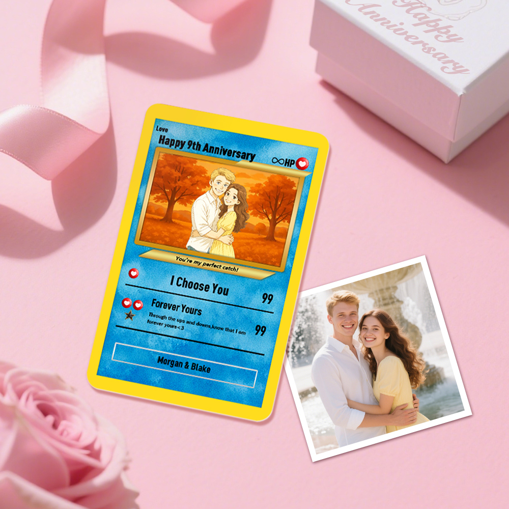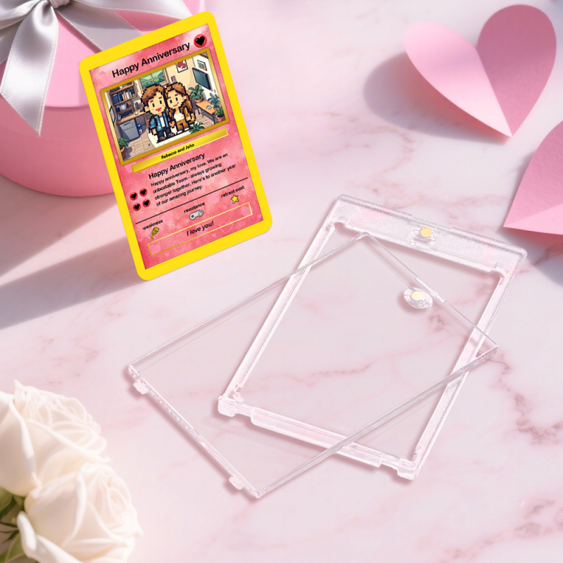 Celebra el Día de San Valentín con esta tarjeta Poke personalizada única. Tomaremos tu foto y la convertiremos en una tarjeta artística inspirada en el anime.Dale vida a tu foto favorita con un divertido estilo de dibujos animados. Esta tarjeta de pareja personalizada está sellada como una pieza de colección e incluye tu foto y un mensaje conmovedor. Ideal para aniversarios, San Valentín o regalos sorpresa.Tamaño:Tarjeta de metal + estuche: 7,3 x 11 cm (2,83 x 4,33 pulgadas)Estuche de acrílico + tarjeta de cobre: ​​8 x 13,5 cm (3,15 x 5,32 pulgadas)Tarjeta de papel + estuche de PVC + soporte de madera: 7,6 x 10,6 cm (3 x 4,17 pulgadas)