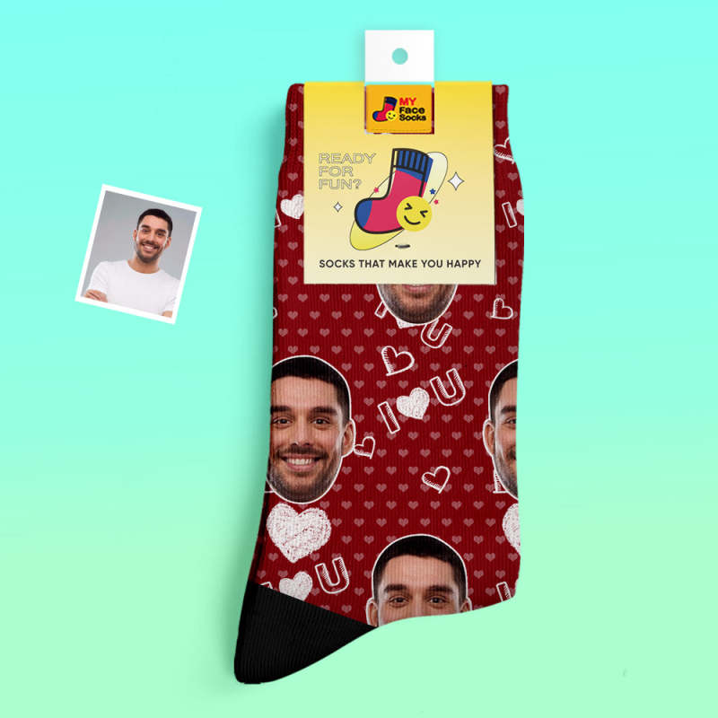 Calcetines Gruesos Personalizados Foto 3d Calcetines Impresos Digitales Otoño Invierno Calcetines Cálidos I Love U Calcetines