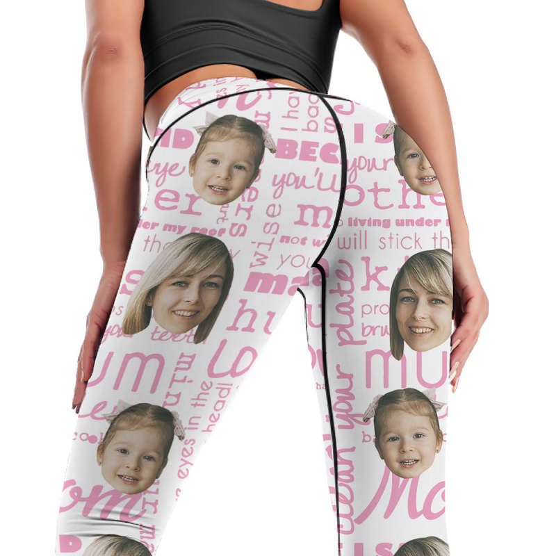Pantalones De Yoga De Polainas De Cara De Mujer Personalizados - Feliz Día De La Madre