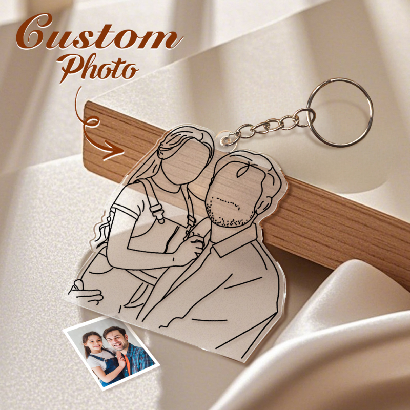 Llavero De Barra Plana Con Arte Lineal Personalizado, Sube Una Foto, Regalo Para El Día Del Padre.