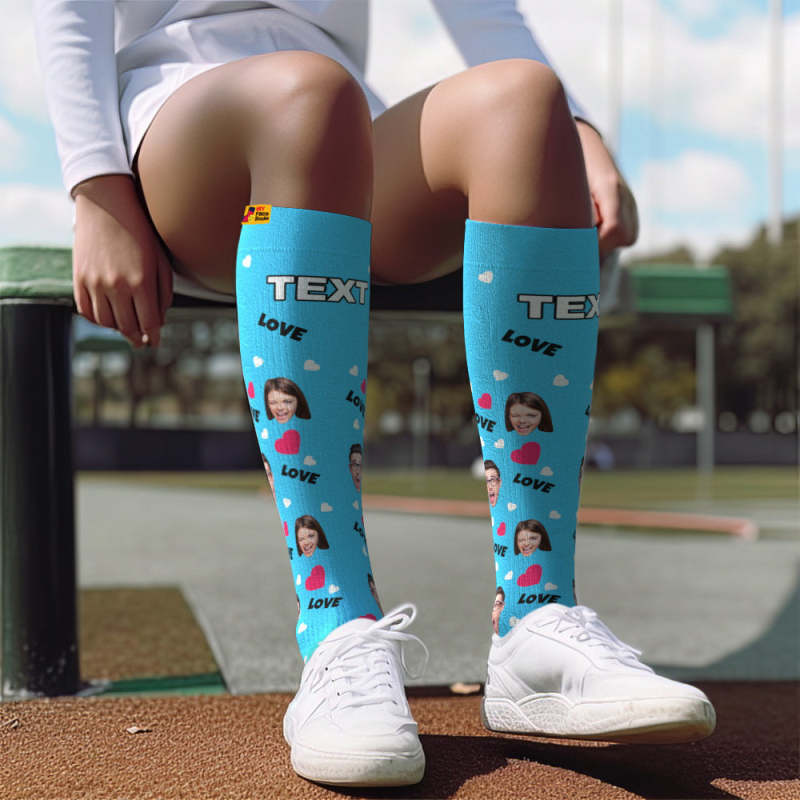 Actualizar Calcetines De Compresión Hasta La Rodilla Transpirables Personalizados Vista Previa En Línea Agregar Imagen Y Nombre Amor